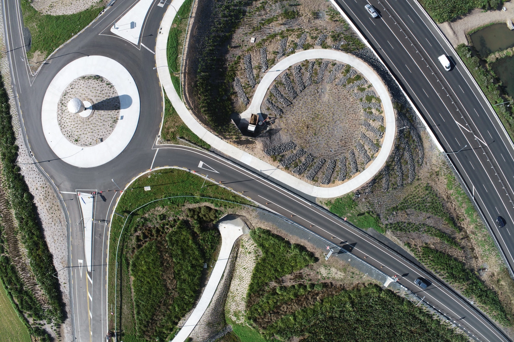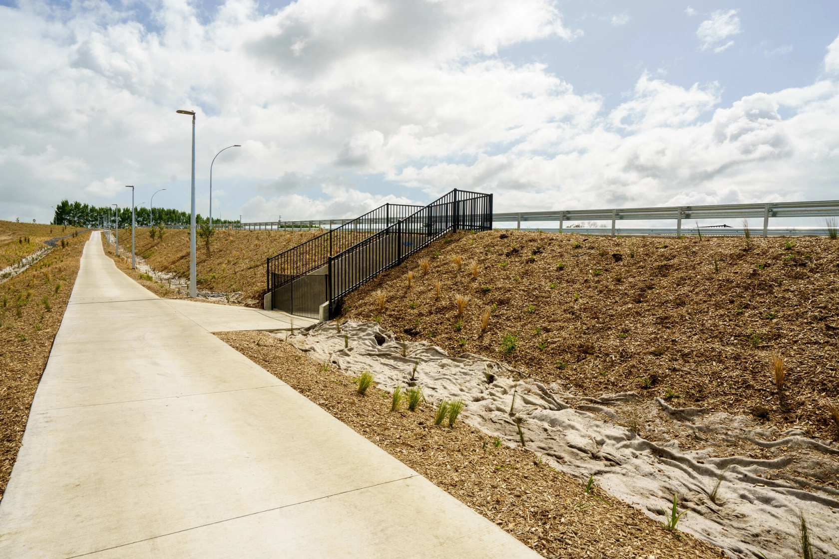 The project also included the installation of a 3m x 2.5m pedestrian/stock underpass. The underpass will connect to future developments on the neighbouring farm. Streetlighting, signage, landscaping, and fencing complete the works, with the junction integrating seamlessly with the surrounding roading network.