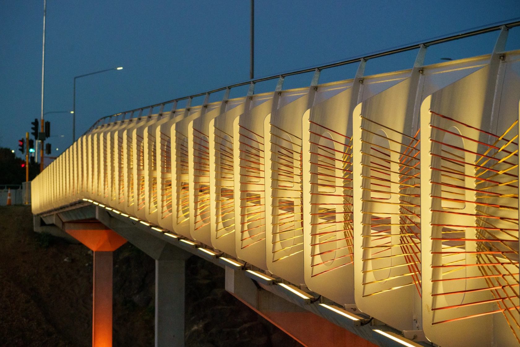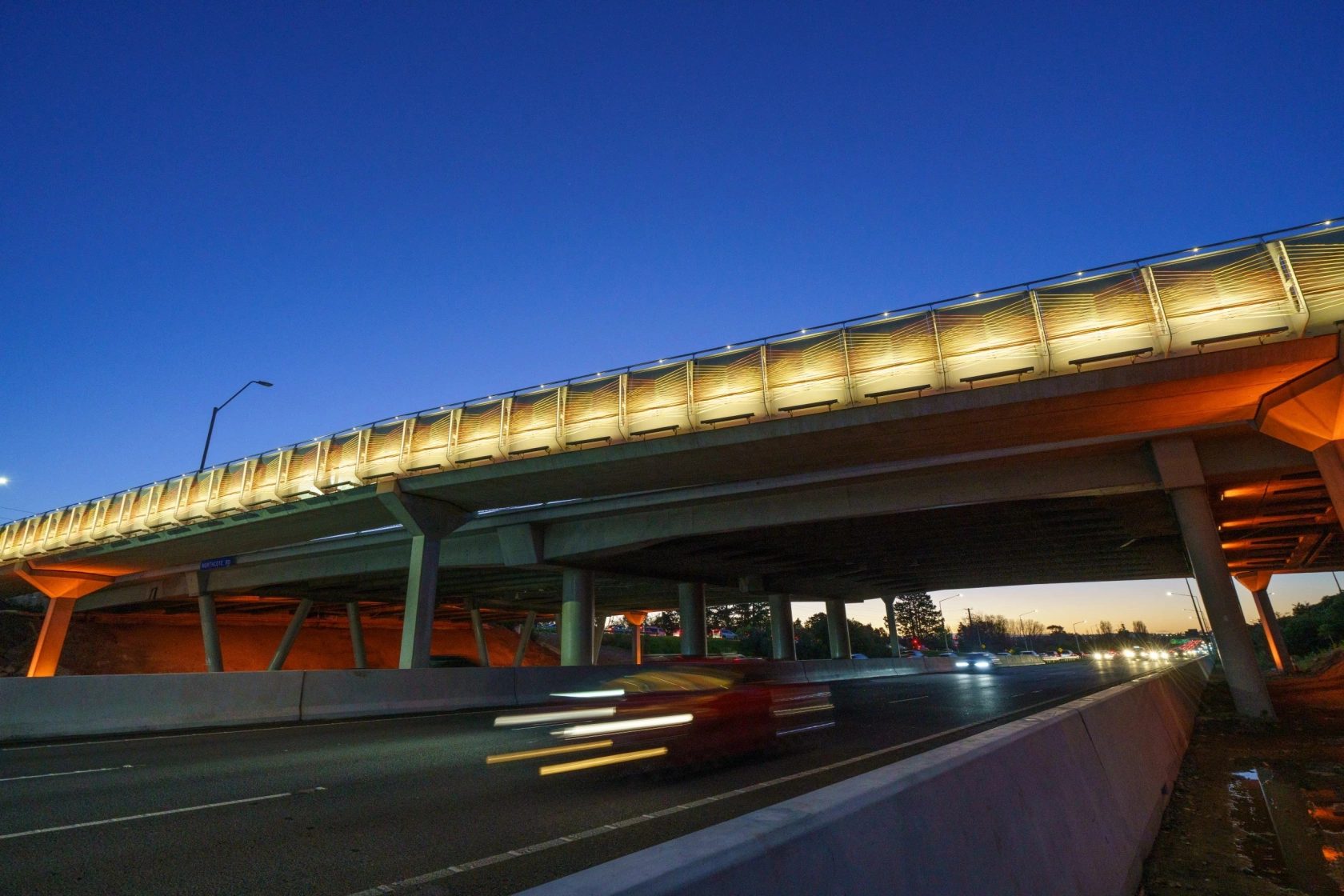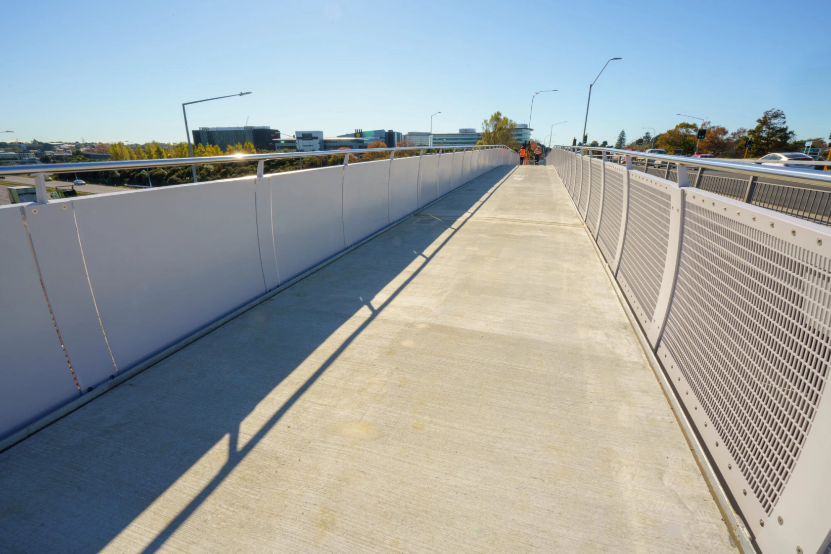 A 3.3 metre-wide, separated shared path constructed on either side of the overbridge provides a safer route for kids to get to school, encouraging more people to walk and cycle and accommodating future growth.