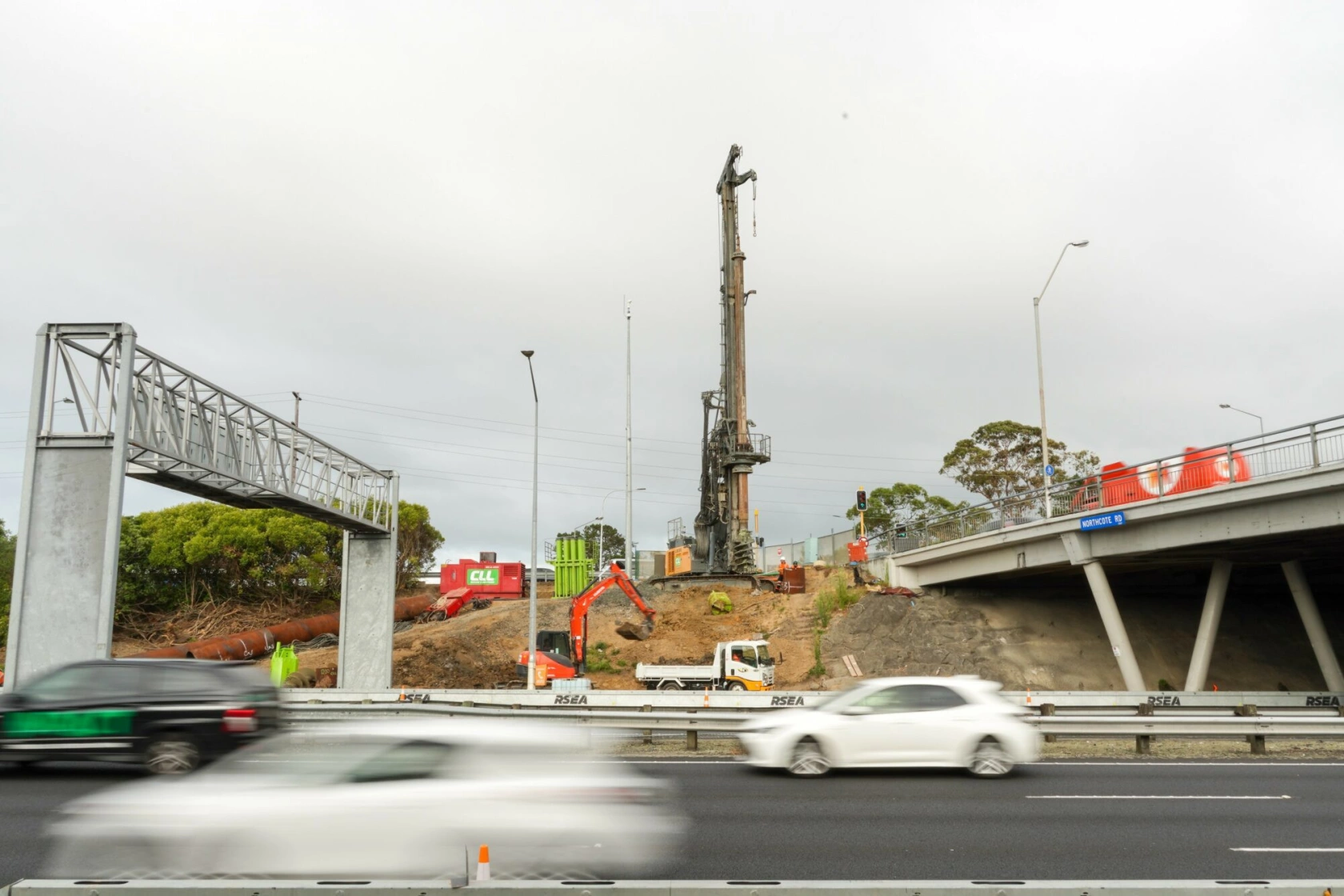 Crossing SH1 Northern Motorway, the new route provides shared path facilities along Northcote Road, a bustling 4-way motorway intersection.